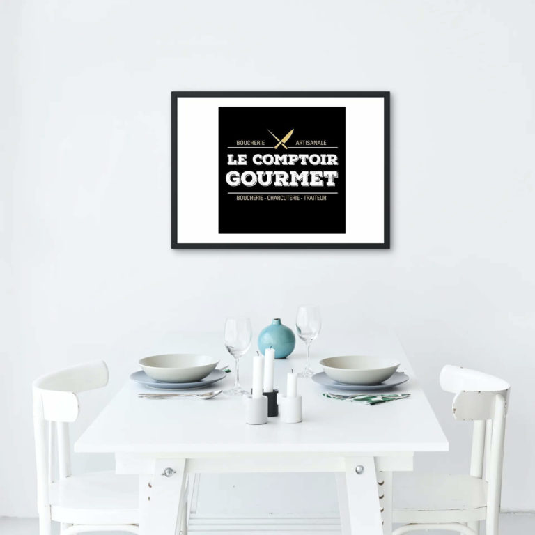 Création de l’identité visuelle et du logo de la boucherie le Comptoir gourmet à Marvie.
